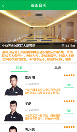 在线实时预约《中航健康时尚集团》旗下会所私教、美容