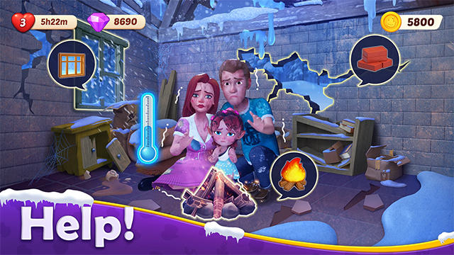 2、创新的合成消除玩法,基础物品可升级为高级装饰,三连消除获得积分,五连触发特殊效果,隐藏配方需要完成挑战解锁。
