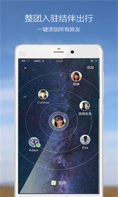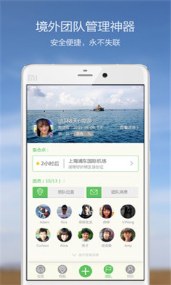 团队入驻App ,接收导游所发集合点及时间信息。导航线路自动生成,安全回归温暖队伍。 所有团员可实时共享位置,不论到世界何处,总能找到自己的团友。