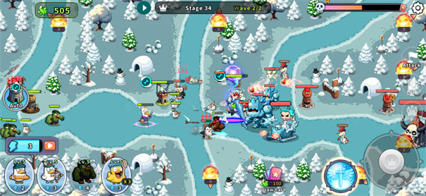 3、Stage关卡,合理布局已选塔,利用技能,抗住【Wave2/5】波次攻击,守护路径,赢取胜利。