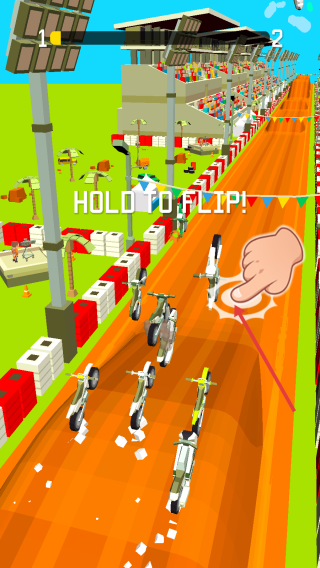 2、赛道上长按屏幕【HOLD TO FLIP】,让摩托翻转特技,超对手。