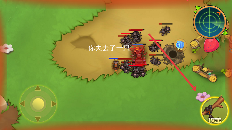 3、遇到瓢虫千万别硬刚,派几个跑得快的蚂蚁把它引到敌对部落门口才是正经。