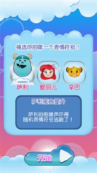 1、初入游戏,玩家需先输入年龄,随后从三个具有不同技能的迪士尼角色表情中挑选首个表情,就此踏入奇妙的消除之旅。