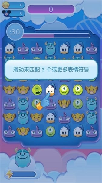1、基础消除:玩家通过滑动屏幕,将相邻的三个或更多相同迪士尼表情包进行消除,以达到关卡目标,如消除一定数量特定表情包、清空棋盘等。