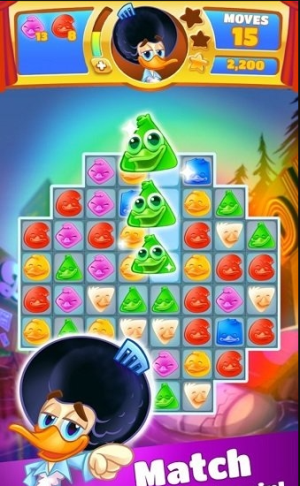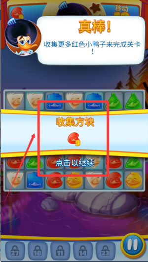 1、基础玩法是通过交换相邻鸭子形成三个或以上相同颜色的连线进行消除,利用T字、四消和五消获得更高分数和特效。