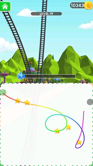 1、游戏独创绘画生成轨道机制,玩家只需流畅地一笔画出过山车路线,系统会智能生成完整的3D过山车结构,操作简单直观却能创造出千变万化的轨道设计。