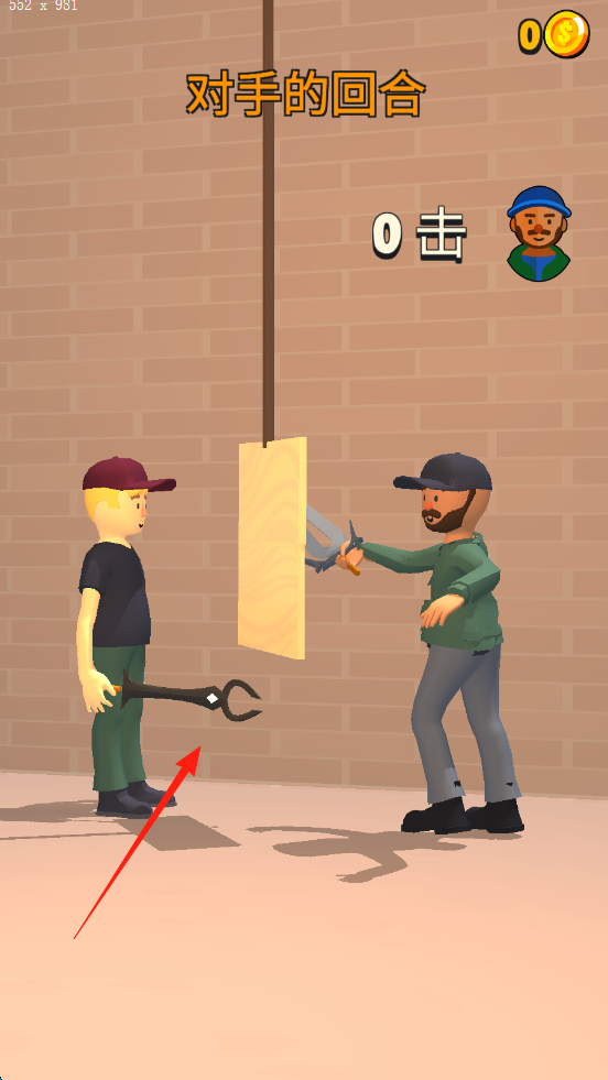 3、带着打造好的武器,与对手回合对战,选择时机,用武器攻击对手。