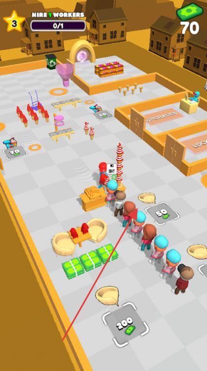 3、场景成长玩法:从街边小摊位起步,随着经营升级,可解锁商业街门店、主题咖啡馆等场景,每个场景配备专属设施、客流特点,推动玩家持续拓展经营版图。
