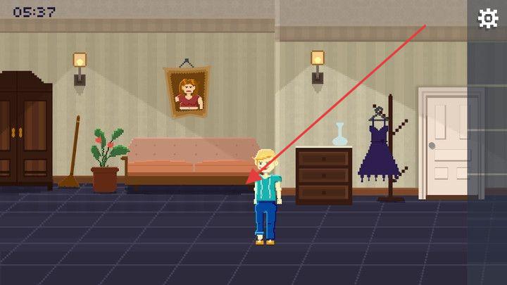 2、在室内场景,按箭头指引移动角色,观察环境找线索(如家具、装饰),触发与场景或后续出现角色的互动。