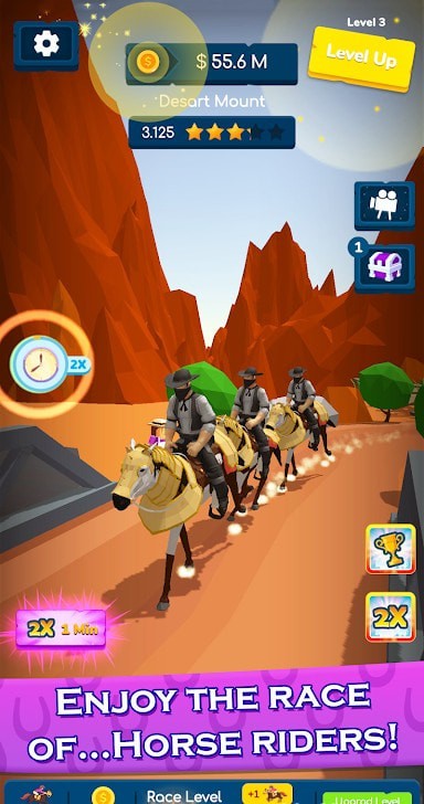 空闲生活大亨赛马比赛深度融合模拟经营与赛马竞技,构建出充满策略与乐趣的马场世界,参与者化身马场大亨,在动态变化的三维场景中展开经营挑战,通过精准规划马匹培育与赛事安排,巧妙吸引顾客并提升马场口碑,高效完成经营目标与成就任务,在轻松惬意的放置经营中体验财富积累的快感。