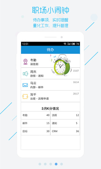 1.移动考勤:手机在手精准定位及时签到。