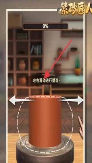 2、在制壶环节,按提示左右滑动进行塑造,精准把控紫砂形态,打造独特壶身雏形。