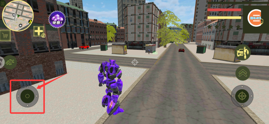 3、采用虚拟摇杆操控系统,通过左下角方向键控制机甲移动。
