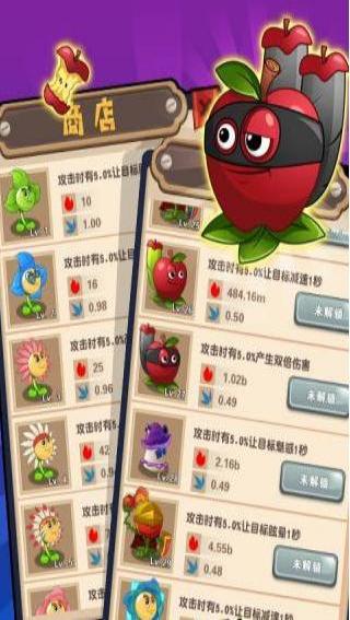 1、在【商店】选植物,看属性(攻击、攻速),用金币购买,解锁新植物,丰富阵容,提升战力。