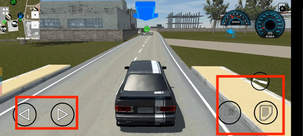 3、左下角控制车辆左右移动,右下角控制车辆加速减速。