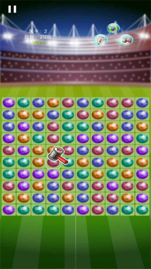 1、游戏以绿茵足球场为背景精心打造视觉场景,足球元素贯穿整个游戏设计,让玩家在熟悉且喜爱的体育氛围中进行消除闯关。