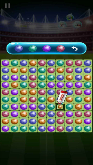 2、丰富多样的足球种类和色彩设计使每局游戏都充满变化,玩家需要快速识别相同颜色的足球进行匹配消除,考验反应速度。