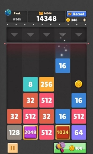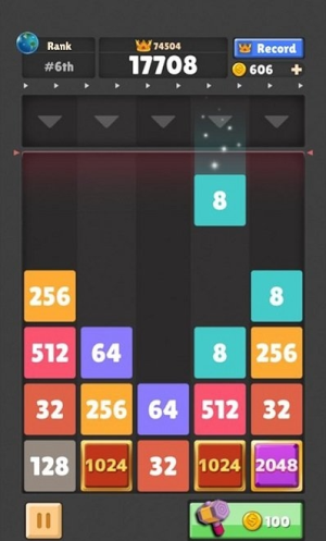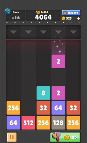 1、游戏核心玩法是控制下落的数字方块,将其移动到相同数字的方块上进行合并,通过不断合并获得更高等级数字。