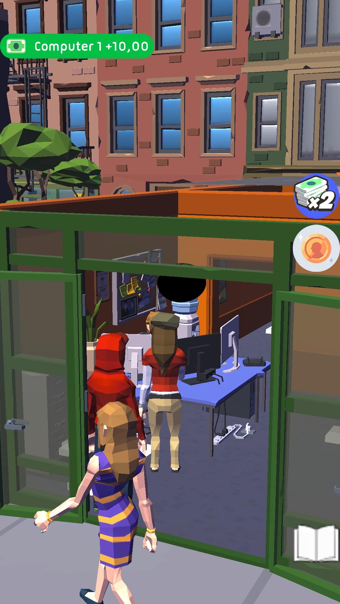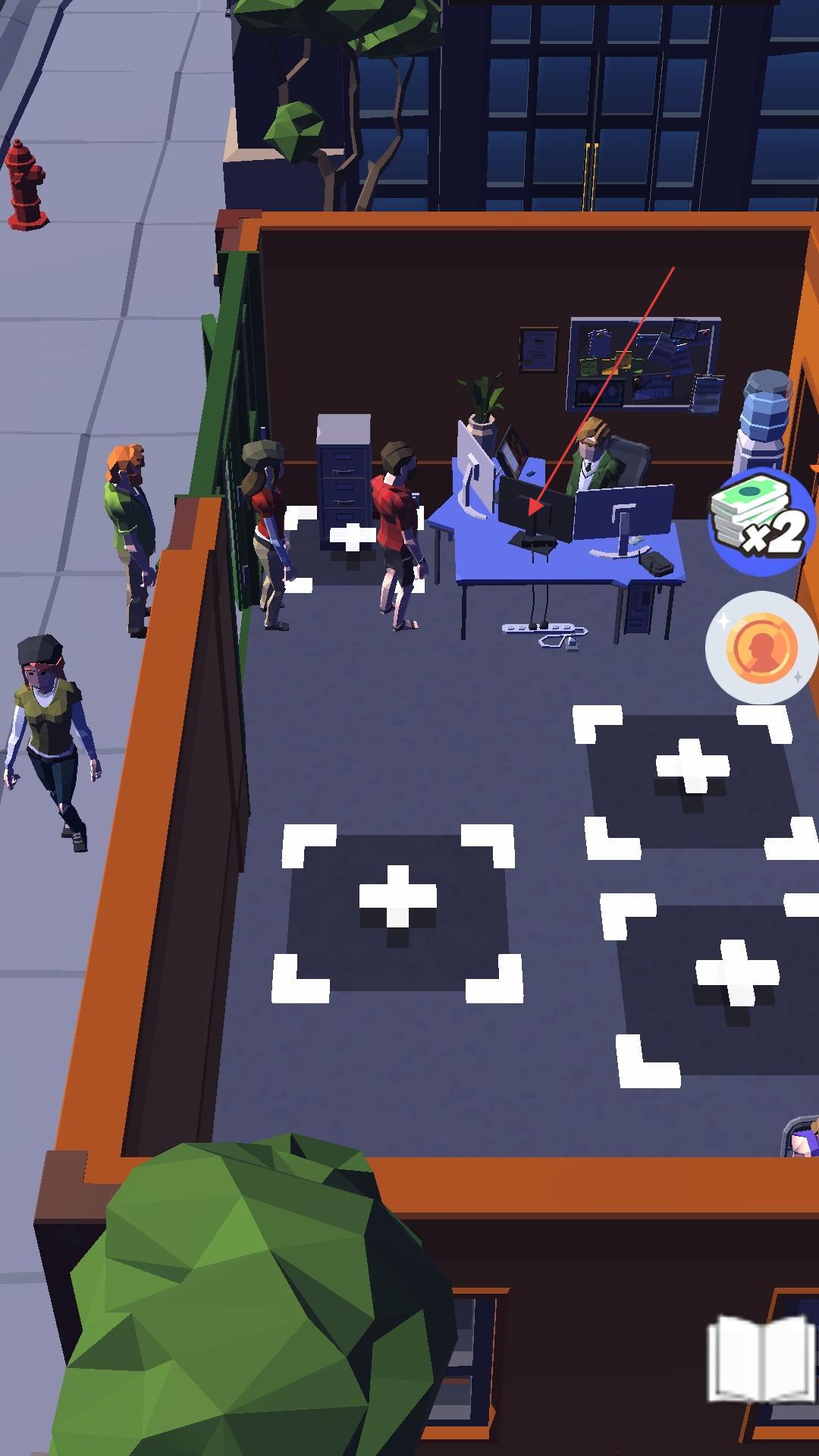 2、操控员工使用电脑等设备,完成任务获取收益,关注右上角倍数、金币等资源变化。