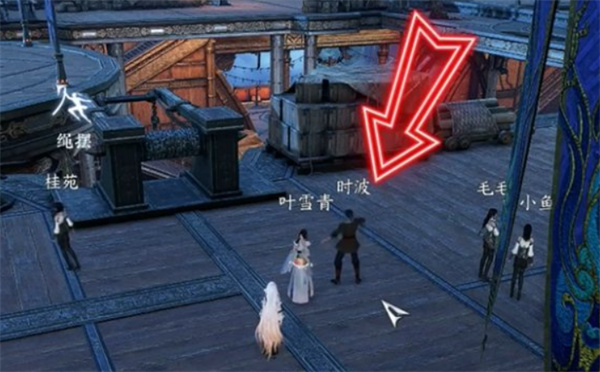 1、在沧澜舰场景,找到NPC“时波”(箭头指引位置),与其对话触发互动。