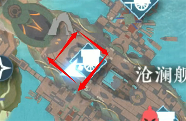 2、根据地图标记区域(红色箭头框选),移动角色到指定范围,推进任务剧情。