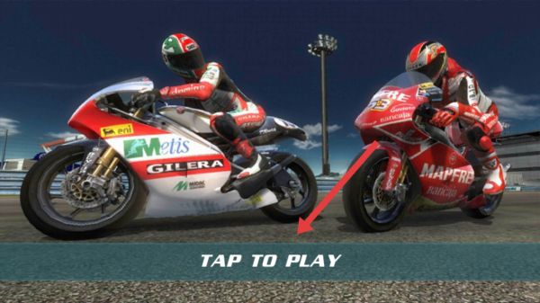 1、进入极限摩托赛车手的游戏主界面,点击【TAPTOPLAY】,开启摩托车竞速游戏的体验流程。