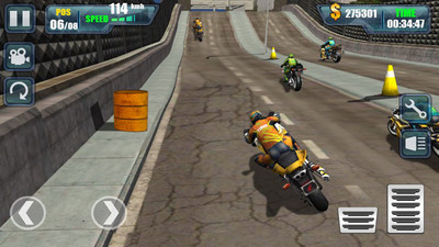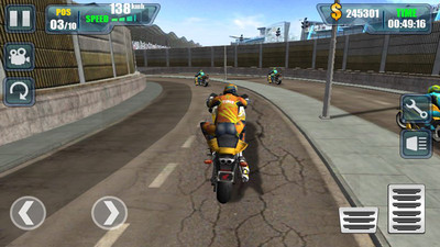 3、竞速体验逼真:带来真正的快速摩托车比赛经验,加速刹车的手感逼真,弯道漂移的物理反馈真实,让驾驶者感受身临其境的快感。