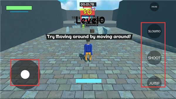 3、进入游戏后,我们需要移动到武器的位置,然后就可以拿起手枪,攻击对手。