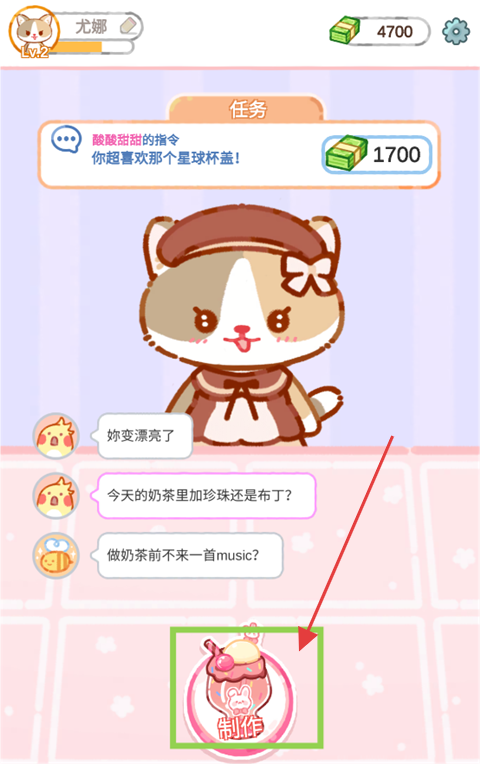 2、直播前要先制作奶茶,进入到这个页面以后点击【制作】然后进行操作奶茶制作步骤。