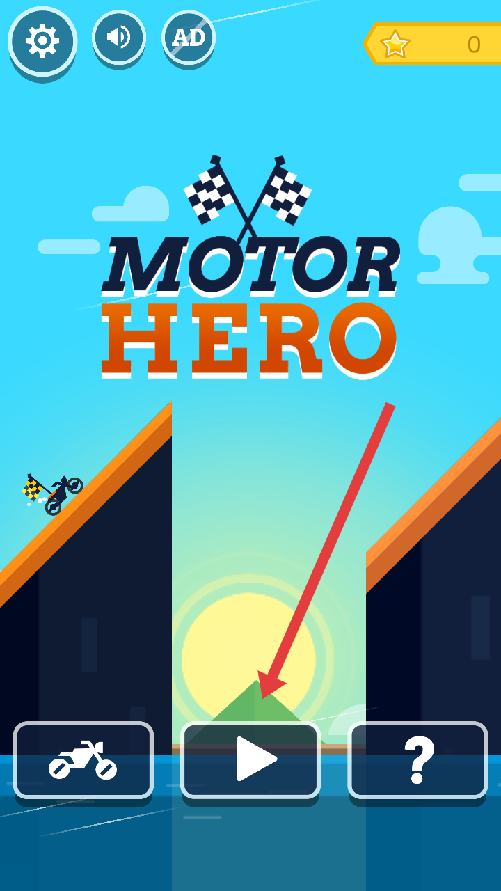 1、操控者需要点击游戏主界面中间的播放图标,启动摩托英雄游戏,开启摩托的闯关冒险。