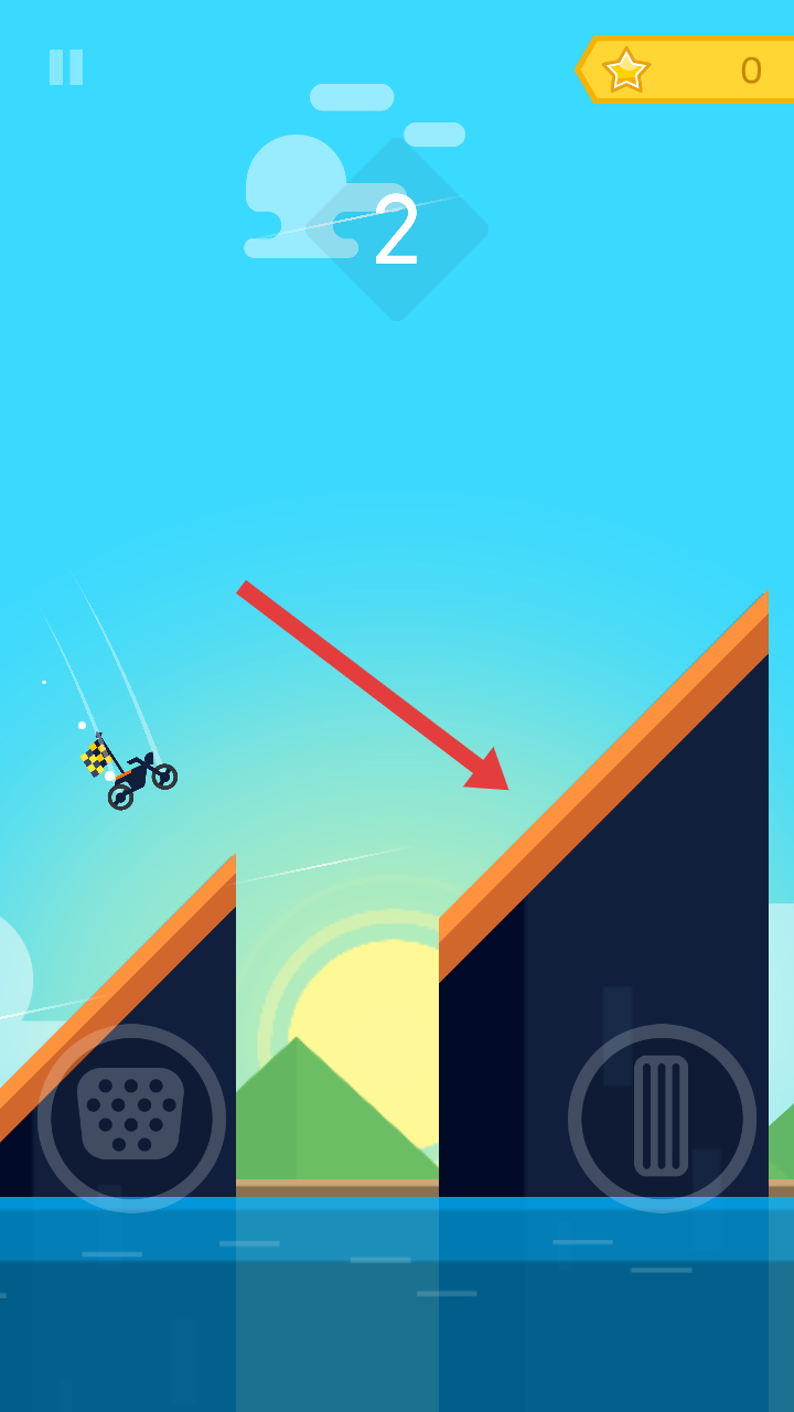 3、在游戏游玩时,操控者需要操控摩托跳跃,利用加速跨越场景中的陡坡障碍,推进闯关进度。