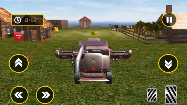 3、依据箭头指引,使用方向按键(如前进键)驾驶收割机在农场行驶,开展收割等farming操作。
