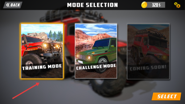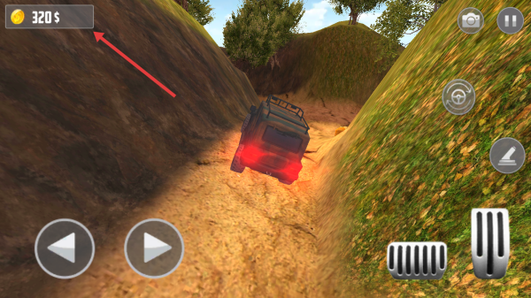 3、在山地场景,控车爬坡过坎,留意金币(320$),积累用于升级。
