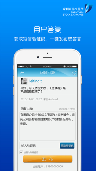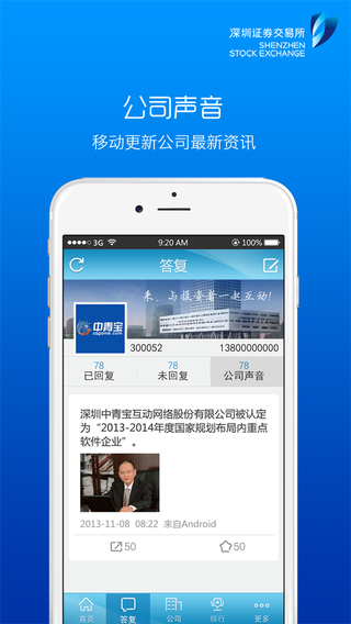 互动易公司端苹果手机版app是由深交所开发的为上市公司提供无偿的和投资者互动交流,实时问题解答的手机软件,还能直接在线发布公司最新的公告,公司展示等,需要的朋友赶快来下载体验吧!