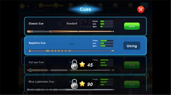 3、个性装备自由搭配:收录超50款定制球杆与12种主题球桌,从流光溢彩的霓虹球杆到复古皮质球桌,每件装备不仅拥有独特外观,还能提供精准度、力度加成等实战属性。
