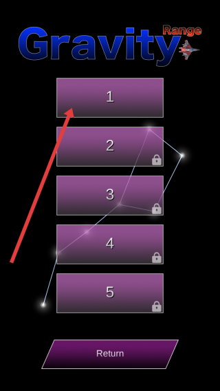 1、在游戏主界面,通过点击【Start】,进入关卡选择页,选择第1关,即刻开启太空引力挑战。