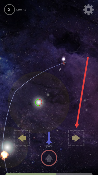 2、关卡内,操控飞船,利用引力(如星球引力圈),按箭头指引调整轨迹,躲避障碍,靠近目标。