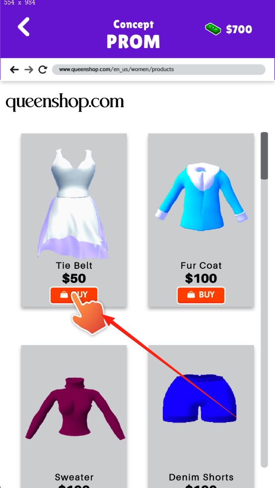 1、交互操作方式:点击屏幕选择服装,滑动切换分类,长按查看详情,通过组合不同操作完成复杂搭配任务。