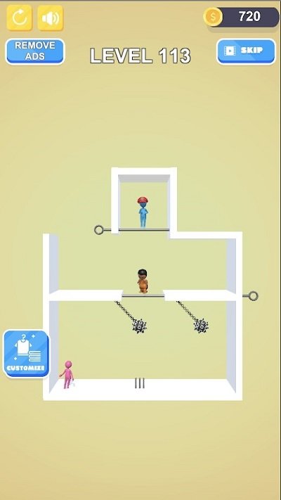 2、策略拉销玩法:每关拉销顺序影响全局,需通过逻辑推理预判陷阱触发机制,实现一步到位的安全救援路径。