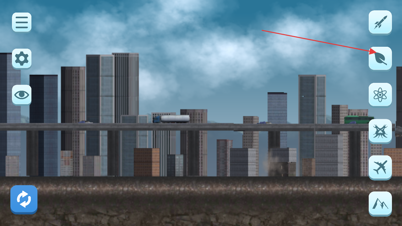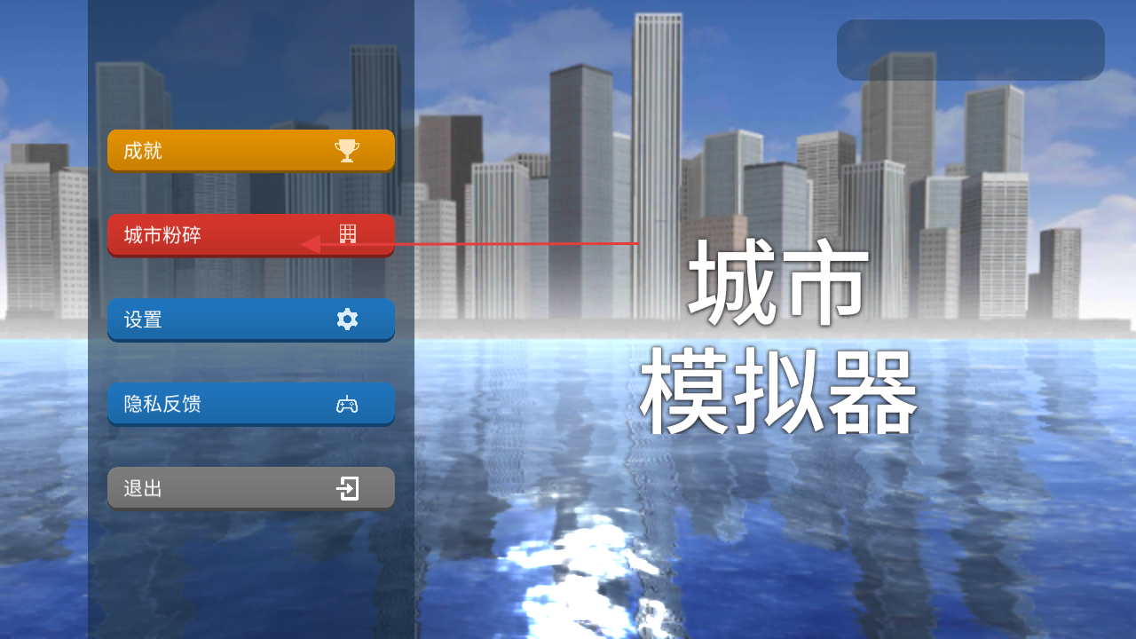 1、进入游戏,点击“城市粉碎”进入破坏模式,选择右侧各类灾害/道具图标(如火箭、树叶等)。