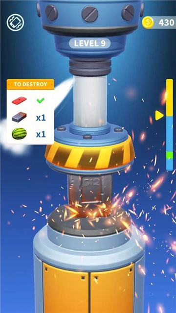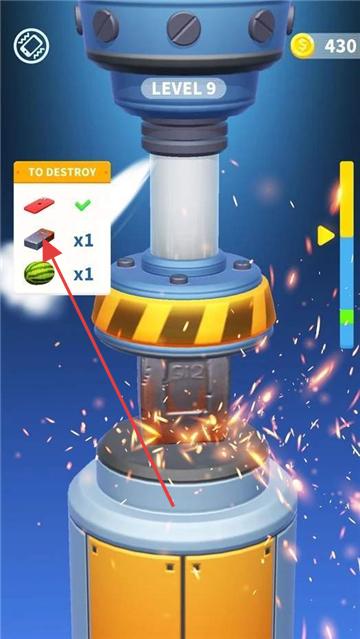 1、进入游戏,查看左侧“TODESTROY”目标(如砖块、西瓜等),启动钻机准备粉碎。