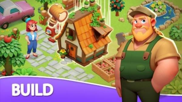1、玩家可以打造、建设自己的岛屿,图里呈现的是建造(BUILD)相关场景,人物和建筑风格符合该游戏特色。