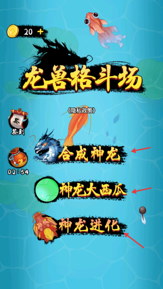 龙兽格斗场II是一款融合合成与吞噬元素的趣味进化佳作,玩家将在充满奇幻色彩的生态世界中,开启从低级生物到顶级神龙的蜕变之旅,以简洁操作与多元模式为核心,让你在轻松体验中感受生命进化的魅力,通过不断吞噬弱小、合成升级,最终称霸海洋,实现鲤鱼跃龙门的终极梦想。