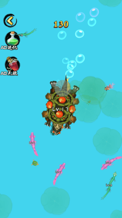 1、合成进化操作:收集两只相同等级的生物,通过拖拽合成更高阶形态,解锁全新能力,例如两只一级鲤鱼合成二级乌龟,防御能力大幅提升,可抵御更多次攻击。
