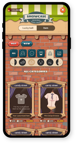 2、切换分类,浏览新上架内容,创建幸运球,参与特色商店互动。