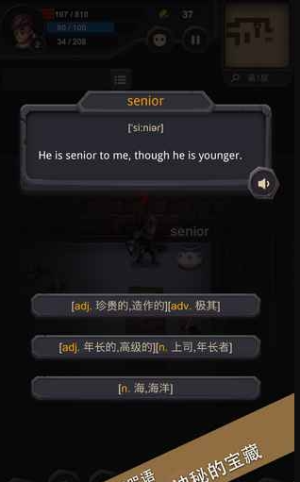 2、通过战斗击败怪物获取单词记忆点数,逐步解锁新技能和强力装备,提升角色战斗力,应对更高难度的关卡挑战,实现能力与词汇量的同步提升。