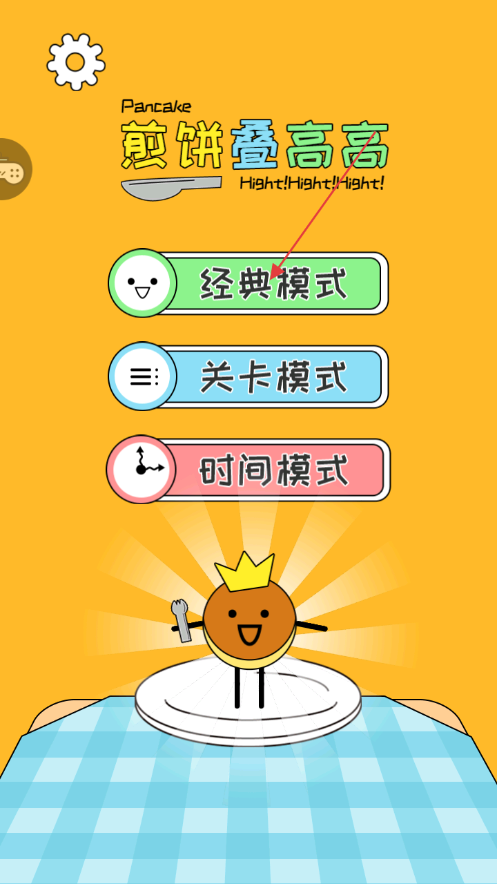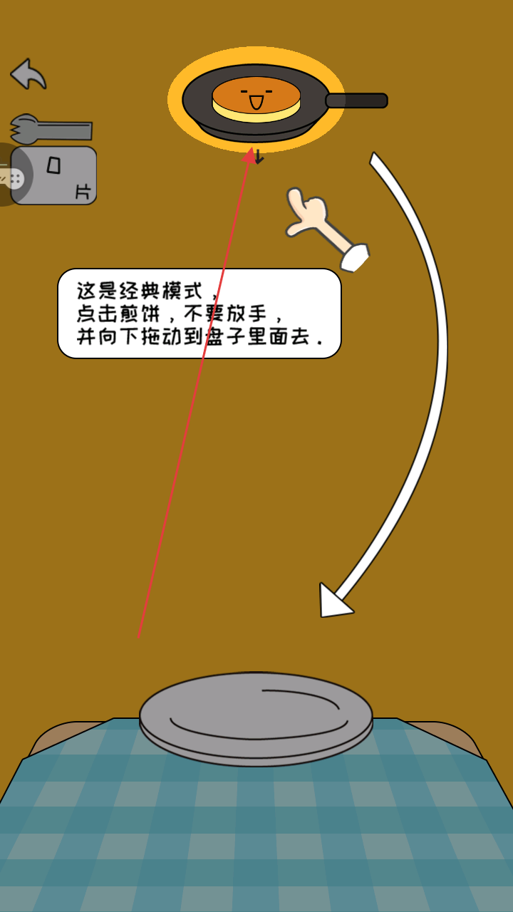 1、进入游戏,选“经典模式”“关卡模式”或“时间模式”,以经典模式为例,点击煎锅上煎饼,按住不放。