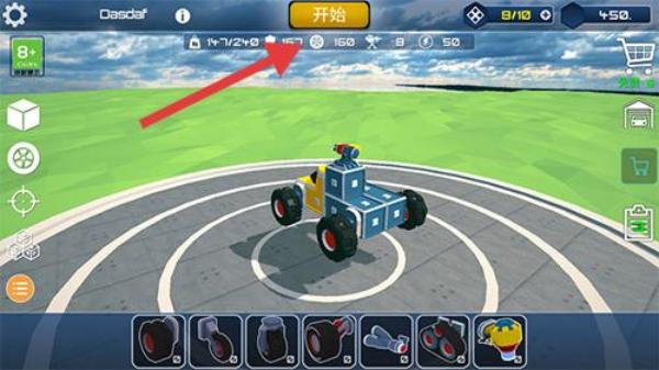 1、车辆搭建:在编辑界面,用方块、车轮等部件组装战车,调整参数后点“开始”。