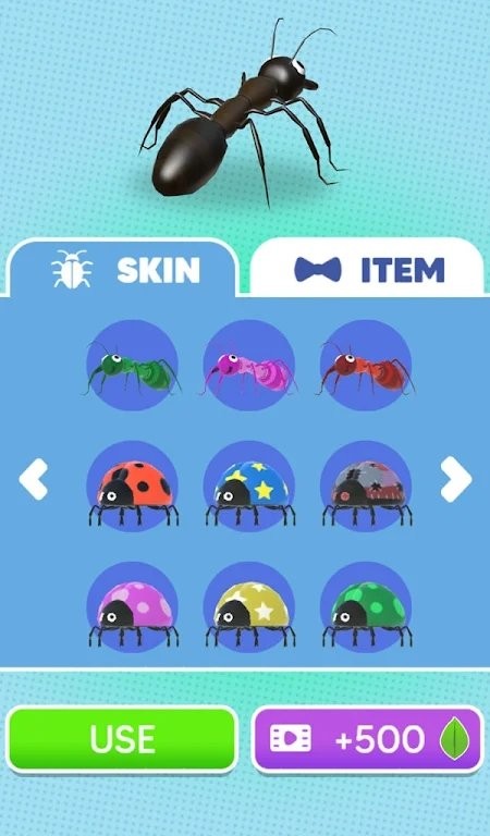 3、昆虫养成系统:解锁蝴蝶、甲虫等10余种特色昆虫,每种昆虫拥有“弹跳强化”“速度加成”等专属技能。