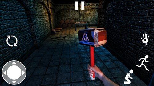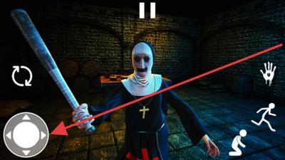 1、遭遇手持武器的修女,快速利用场景【门板、木桶】遮挡,按移动键绕开,别被其攻击到。